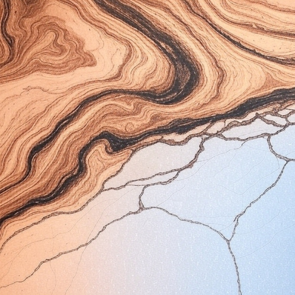 Organic marble texture with swirling rose gold, black and glossy finish.