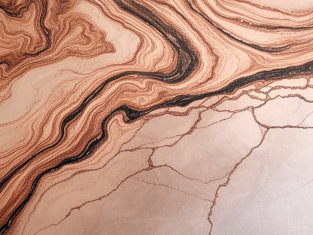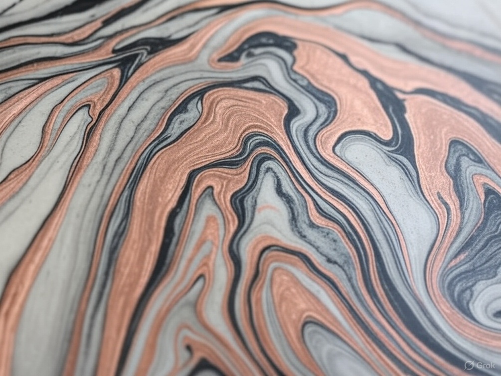 Organic marble texture with swirling rose gold, black and glossy finish.